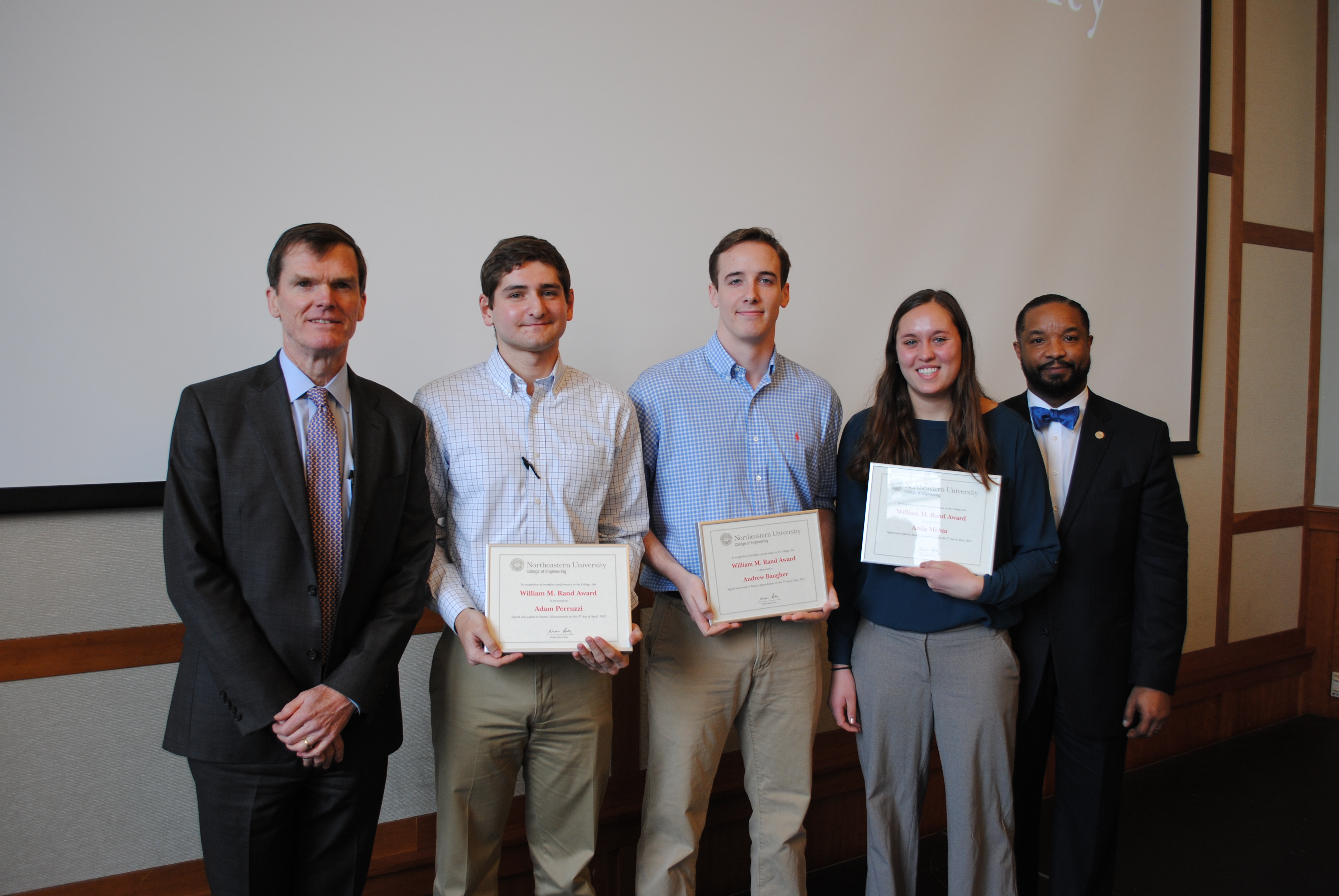 Congratulations to Adam Perruzzi (BSIE/MSEM'17), Andrew Baugher (BS/MS ChE'17), Anila Mehta (ChE'19), and Jude Arbogast (CIV'19) on receiving the William M. Rand Award.